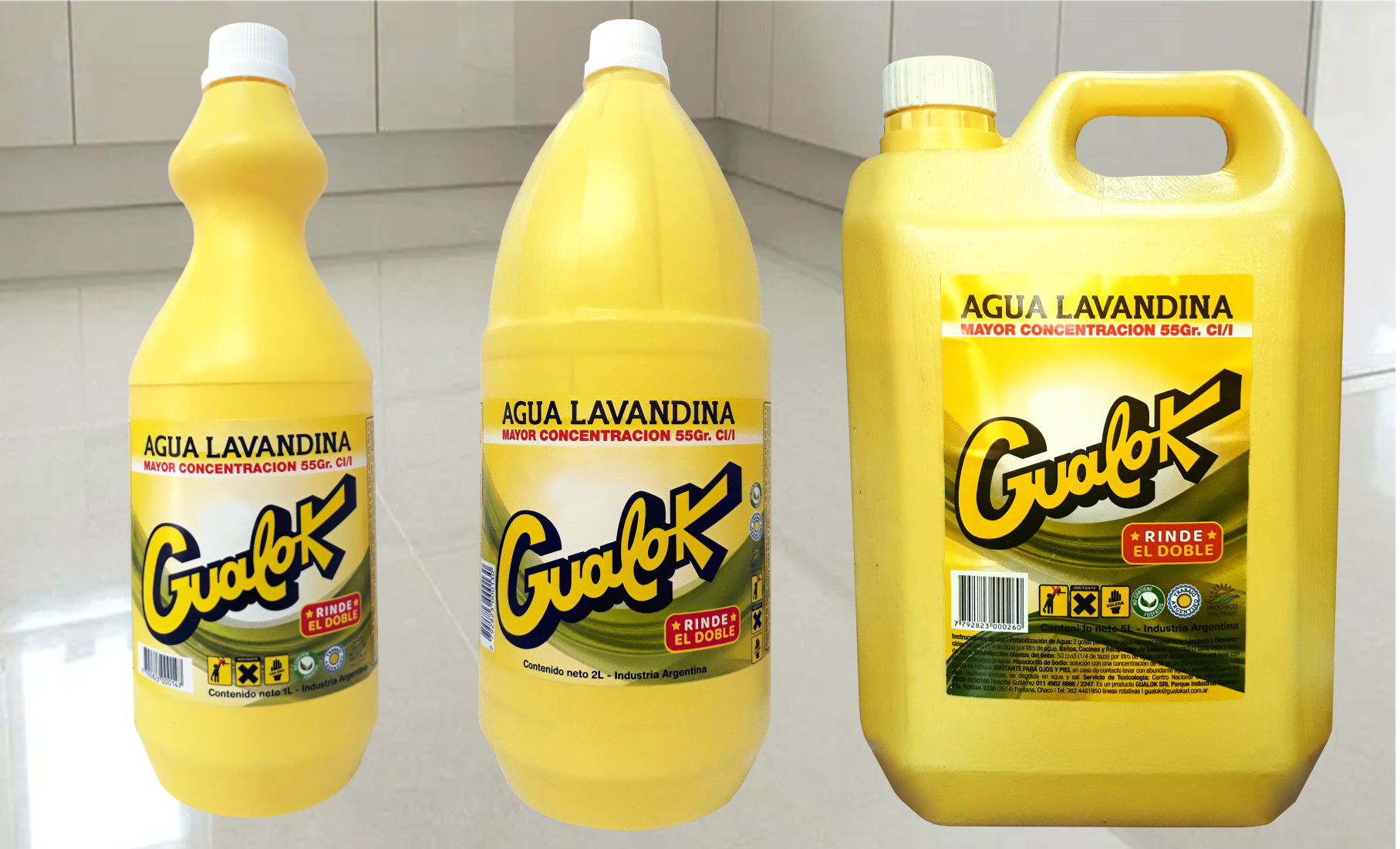 Descripción: Concentración de 55 gr de cloro por litro. Desinfección de superficies e instrumentos . Fungicida y bactericida. Desodorización, purificación y tratamiento de aguas. Blanqueador y lavado de textiles. Dilución recomendada: 1 parte de producto en 2 partes de agua.