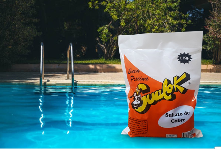 Aplicación: Proporción recomendada: 1 kg cada 100.000 litros de agua. Se diluye en cantidad necesaria de agua y se agrega en las esquinas y los bordes de la piscina. Dejar reposar 12 horas y pasar el limpiafondos.